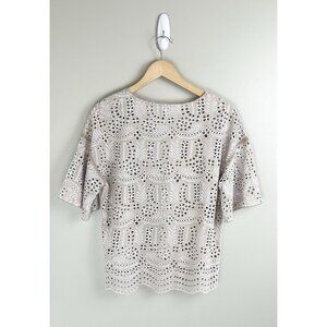 Tribal Jeans Women’s Embroidered Eyelet Blouse Size‎ M Feminine Summer Oatmeal