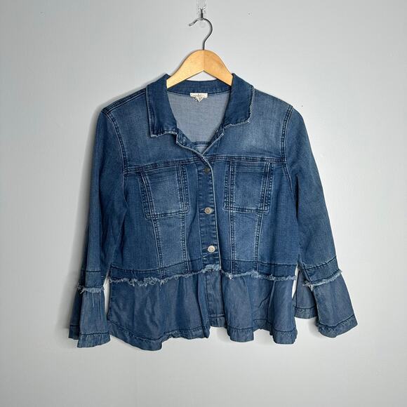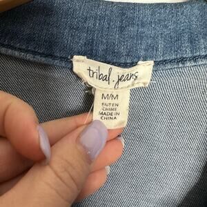 Tribal Jean's Women's Lightweight Skirted Sleeve + Base Detail Denim Jacket SZ M