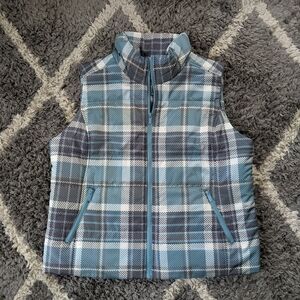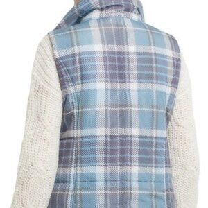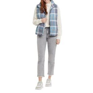 Tribal Jeans Women's Plaid Printed Puffer Vest Stormy Sea Blue Size Large