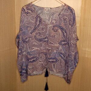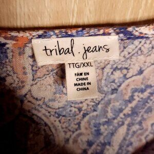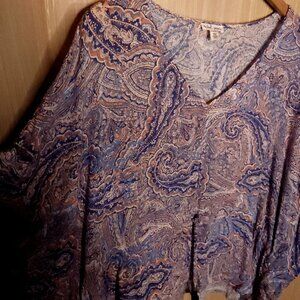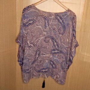 Tribal Jeans women’s silky pastel blue flowy poncho style top XXL. Gently used condition. Measurements are: 27” from shoulder to hem.