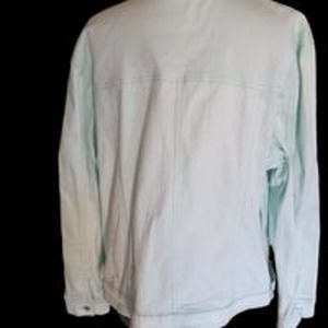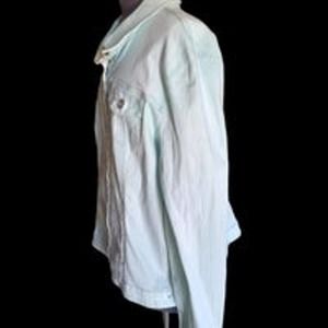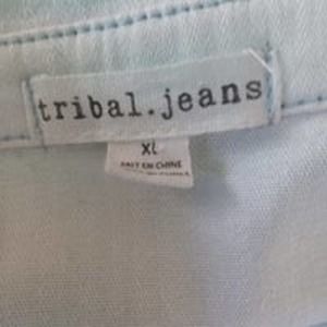 Tribal jeans woman's denim jacket turquoise washed color long sleeve button front size XL 98% cotton 2% spandex can be unisex no rips or tears