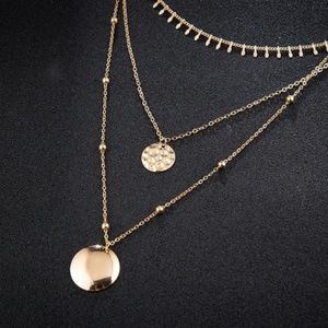 New with tags Tribal Layered Hammered Coin Pendant Gold Necklace.