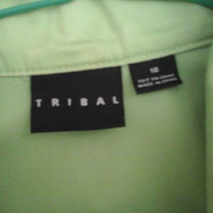 Tribal Lime Green 3/4 Sleeve Woven Cotton Blend Zip Front Jacket. Size 10