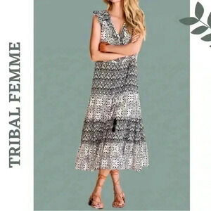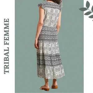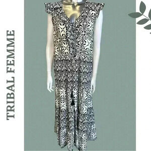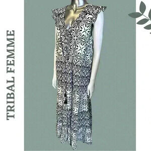 Tribal Lined Combo Print Maxi Dress w/Drawstring Black 8880-3647-0002 Size Small