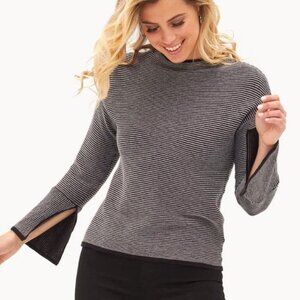 Tribal Long Sleeved Dolman Funnel neck split bell cuff Sweater M