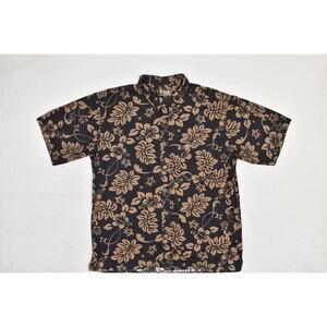 Tribal Origin Shirt Mens 3XL Black Brown Hawaiian Button Up Floral Aloha Camp