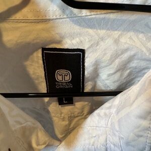 This Tribal shirt features a crisp white color and a classic button-down design, perfect for casual outings. Made from a comfortable fabric, it offers a relaxed fit that ensures ease of movement and style.