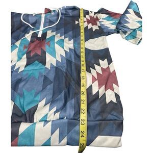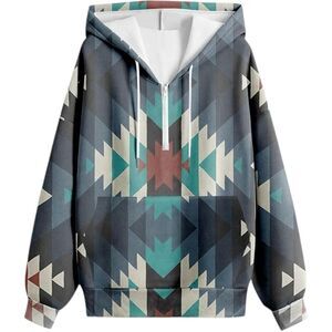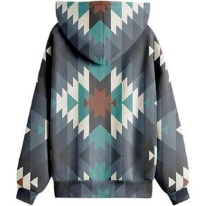 Tribal Oversized Gray Blue Hooded Sweatshirt
