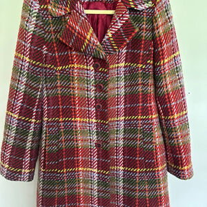 Tribal Plaid Women’s Wool Blend Single Breasted Coat Red/Green Bulgaria Made- 8