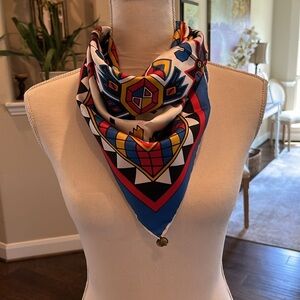 Tribal Print Multicolor Geometric Silk Square Scarf Vibrant Abstract Bold