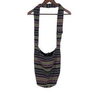 * Tribal Print Multicolor Purple Green Woven Crossbody Bag Purse Tote