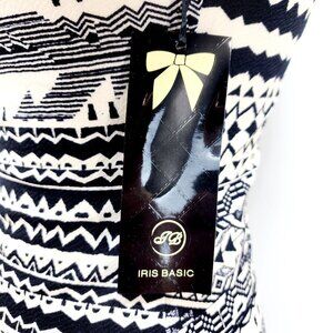 This tribal print midi dress features a form-fitting silhouette and breathable mesh panel accents. Ideal for smart-casual settings or professional events.