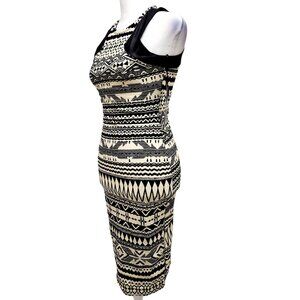 Tribal Print Sleeveless Midi Dress With Mesh Panel Detail Size S