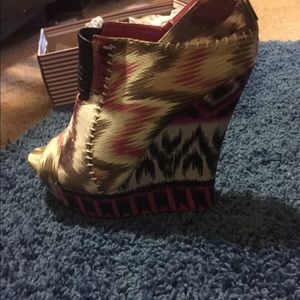 Bamboo tribal Print wedges only worn once. In great condition. Peep toe front.