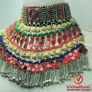 Tribal Red Choker Necklace, Handmade Kuchi Choker Necklace