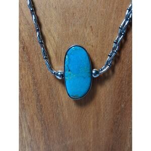 Tribal Reversable Sterling Silver Turquoise Necklace 18" - 22"