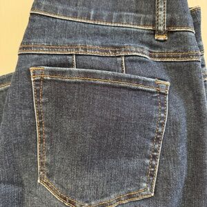 Very gently worn Tribal Sophia jeans -- Straight leg. These are the dark indigo wash (you'll see the cover photo clearly came from the Tribal website to better represent the color, as it looks washed out from the photos on my phone). They have a gentle stretch and an elasticized waistband to ensure no gapping.