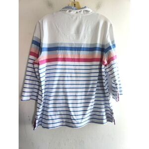 Tribal Sport "Cool Blue" White w/Blue Pink Stripe Cotton Drawstring Polo Shirt Large. great condition