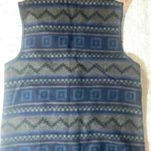 Very cool Tribal Sportswear wool “feel” vest. There are no tags specifying the fabric, but feels like wool. Would recommend dry cleaning. Men’s size large. 21” across the chest & 27” long. In excellent condition.