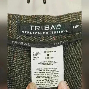 Tribal Stretch Extensible Wide leg Trouser Size 8P Brown w/ Blue & Tan Stripping