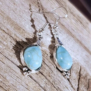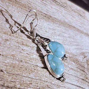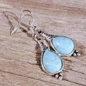 Tribal Style Teardrop Turquoise Stone Silver Dangle Earrings