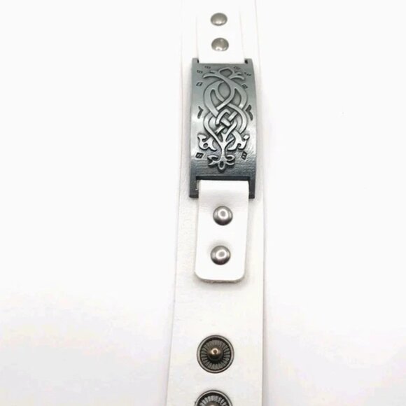 Tribal White Vegan Leather Bracelet-New 8 Inches Unisex New