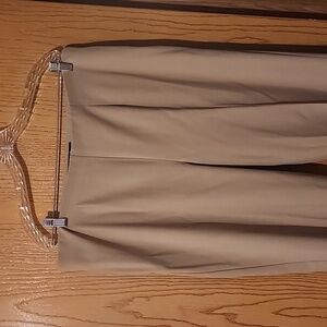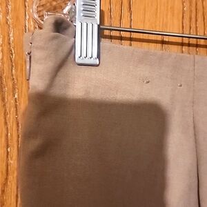Rayon and polyester spandex blend slacks in a light tan color. These pants feature a side zipper and button closure, with a 31-inch inseam and a 34-36 inch waist.