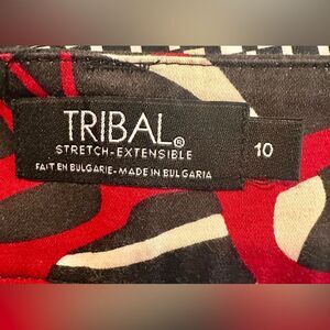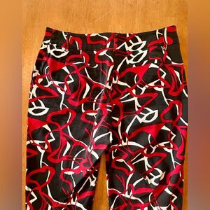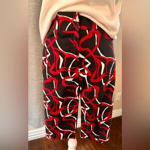 Vibrant red and black design. Eye-catching abstract pattern. Ideal for bold fashion statements. Perfect for summer office with a crisp white button shirt and into Fall with a black jacket.