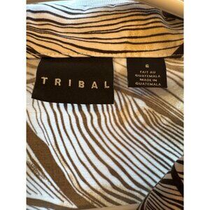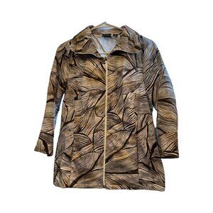 Tribal Womens Size 6 Abstract Brown & White Patterned 3/4 Sleeve Lightweight Jac