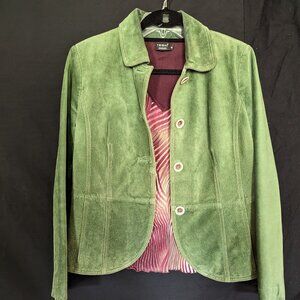 This shirt was bought at the same time as the Bernardo green leather jacket at Nordstrom (jacket is also listed for sale). They were bought to wear together.