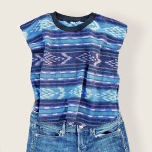 3/$20 Size L. Large. Tribal pattern. Blue and black. Crew neck. Measurement of length and under arm to under arm in the photos. Crop top
