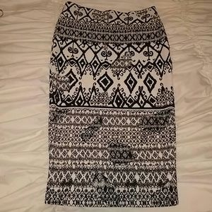 Stretch fabric, form fitting pencil skirt in black and white. Size Medium. Hugs your curves!