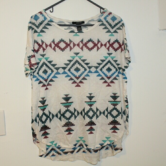 Pretty tshirt with colorful tribal print pattern. High slits on both sides up to the chest area. Super flattering.