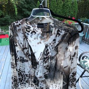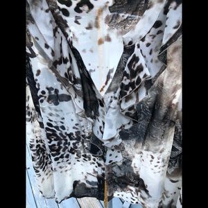 Tribal size 14 silky top v-neck ivory , brown print blouse with ruffle NWOT