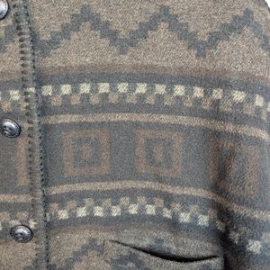 A very unique vest that has a light feel to it, yet looks like wool. It has stitching around the edges and comes from a smoke-free home.