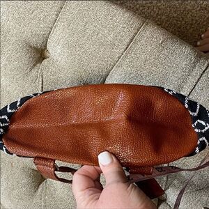 Printed Backpack. NWOT features stitched fabric with vegan leather trim. Drawstring tightens and has a front snap closure closure. Adjustable straps. #backpack #festivalvibes #travel #school