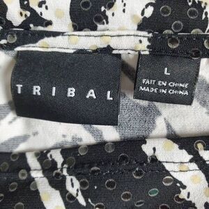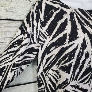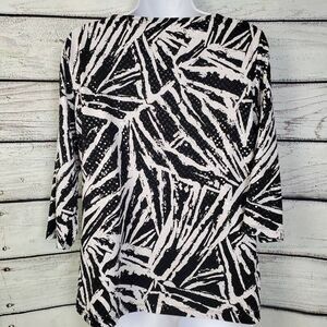 Tribal Black White Abstract Sequin Top 3/4 Sleeve Size L