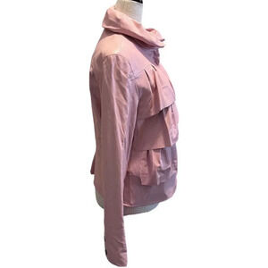 Tribal Faux Leather Jacket Blazer Ruffles Full Zip Front Womens Pink Size 6