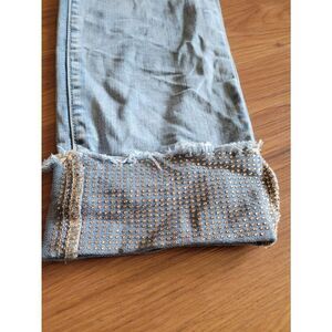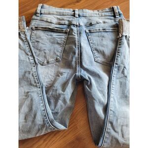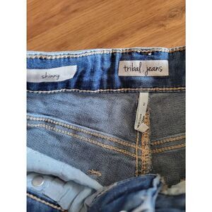 Tribal Skinny Jeans. Raw hem cuff, with jewel/crystal detailing. Great condition. Size 2, approximate measurements in photos.