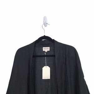 New with tags! Black 100% linen kimono style open front jacket. Has wide long sleeve with dropped shoulders. One size.