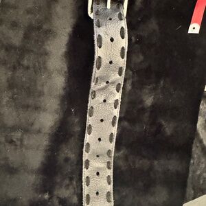 Adjustable belt: 15" to first hole, 22" to last hole on the leather belt