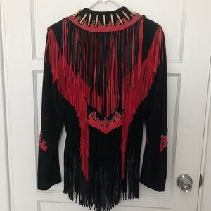 Tribe America Black and Red Fringe Custom Leather Jacket