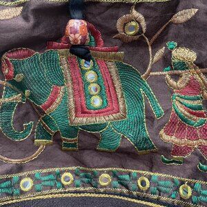 Tribe Azure Boho Elephant Print Crossbody Bag. 100% cotton. Made with thick woven Jacquard Fabric. Handmade woven elephant floral tapestry. Its deep design holds all of your essentials, while wide straps provide a comfortable carry. Small pocket with hook and loop closure at strap. Zip closure with inner zip pocket. Excellent preowned condition.