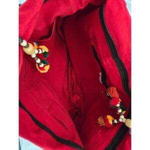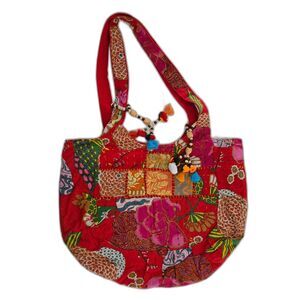 Like new made in India Hobo bag with attached charm tassel decor. This is a cool bag made with 100% cotton. Snap closure with inside zipper pocket. Measurements in the picture listing. Please see photos for details.