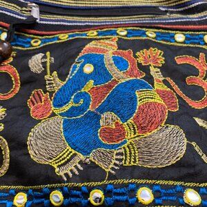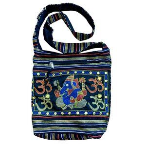 This sling bag offers a blend of craftsmanship and functionality, featuring intricate Ganesha embroidery, Om motif, and durable cotton material for daily use.