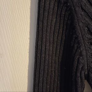 This is warm and chunky black turtleneck sweater. The turtleneck is very flattering, along with the cuffed sleeves and knit type texture. Very lightly used, only worn a couple times!
