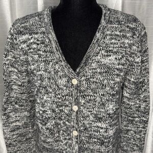 Tribeca Studios Women’s Medium Black White V Neck Button Up Cardigan Sweater
