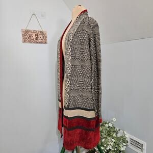 Tribekka 44 Sweater Gray White with Red Crushed Velvet Knit Cardi Size Small