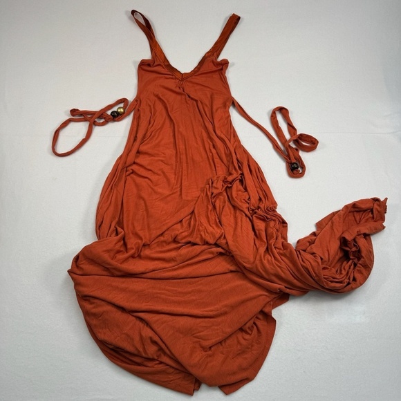 Tricia Fix Boho Flowy Sleeveless Maxi Dress Womens Size XS Belted Beads