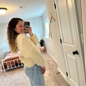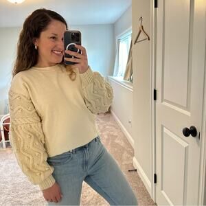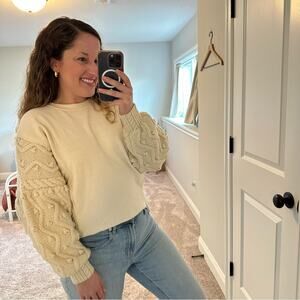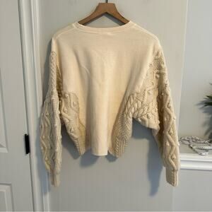 Tricia Fix Cream Wool and Cotton Mixed Media Cable Sweatshirt XS
